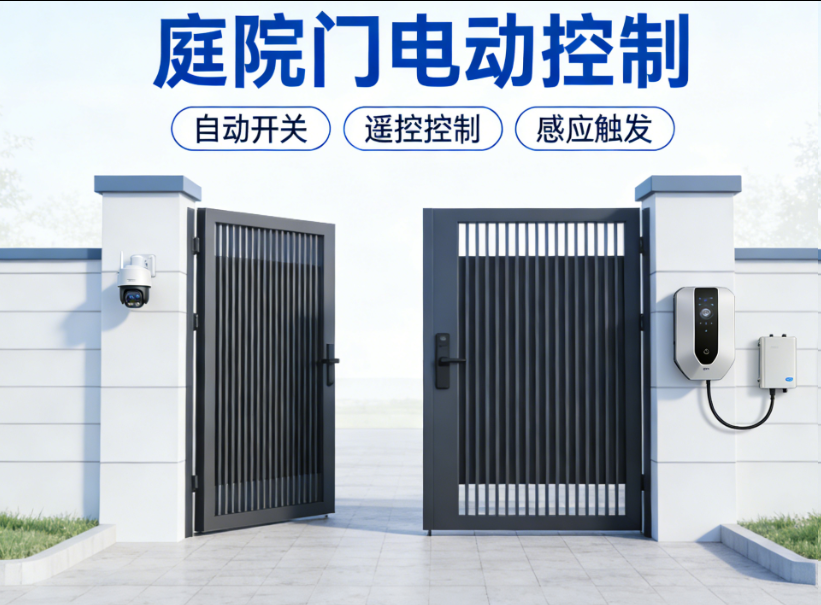 庭院门电动控制是为别墅、高端住宅小区、工厂庭院、私人庭院等场景设计的自动化控制系统,核心功能是实现庭院门的自动启闭、远程管控、安全防护,替代传统手动开关门,提升使用便捷性和安全性,同时搭配庭院整体风格