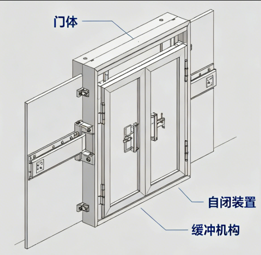 防撞门自闭系统是防撞门的核心配套部件,与防撞门的耐冲击、自动回弹功能相辅相成,核心作用是确保门体在受到撞击、人为推开后,能够自动、平稳、快速地复位关闭,无需人工干预,既保障通行效率,又能维持场所的密封