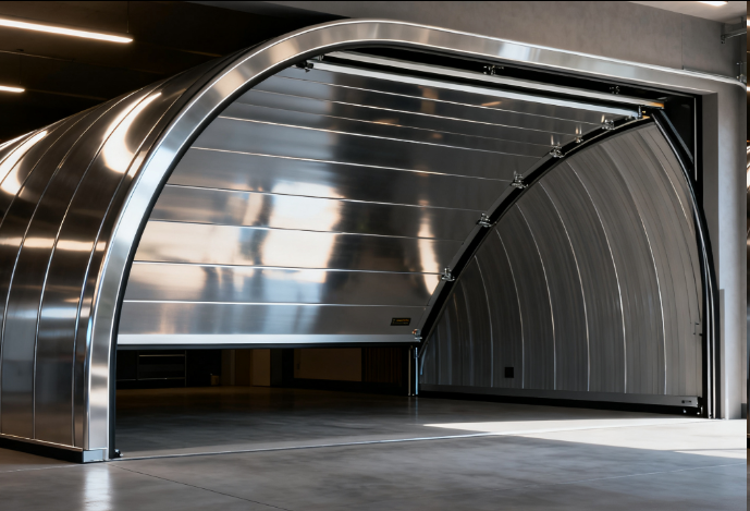 在别墅车库、商业综合体地下车库、高端住宅独立车库等出入口呈弧形或顶部空间有限的场景中,传统直轨车库门难以适配弧形结构,且上翻时占用顶部空间大,车库弧形上翻侧卷门凭借 “弧形上翻 + 侧向卷收”
